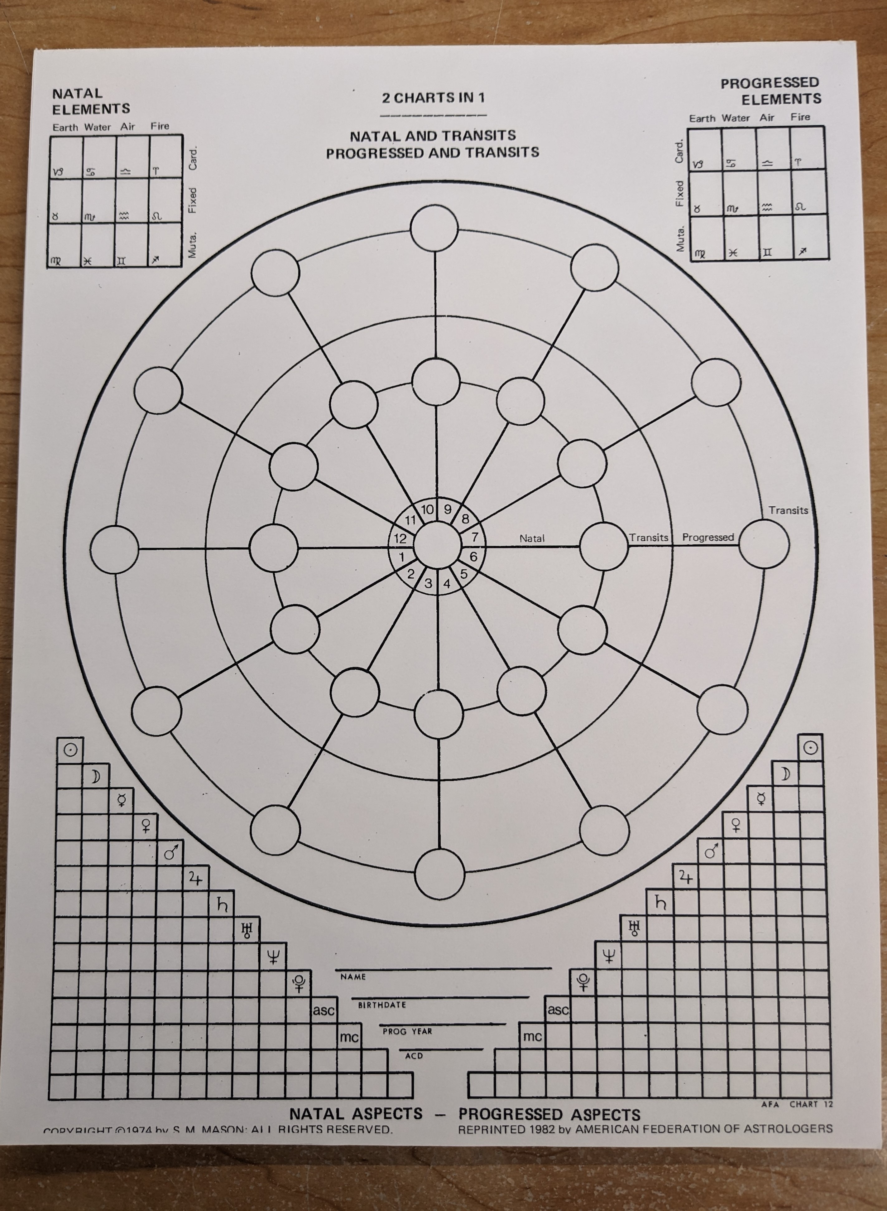 Form 12 Sophia Mason, Natal and Transits, 25/pad.