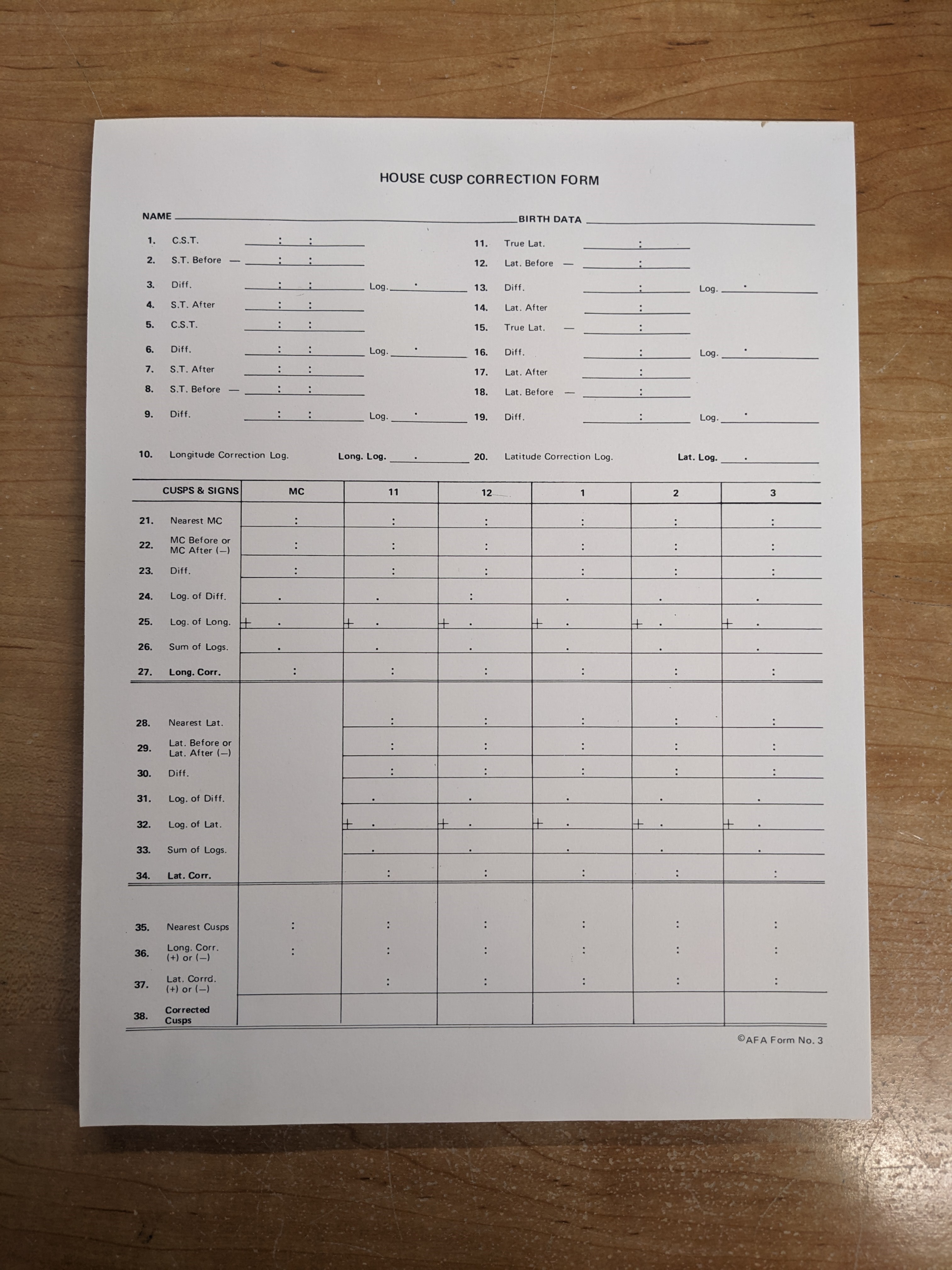 Form 3 House Cusp Correction, 50/pad.