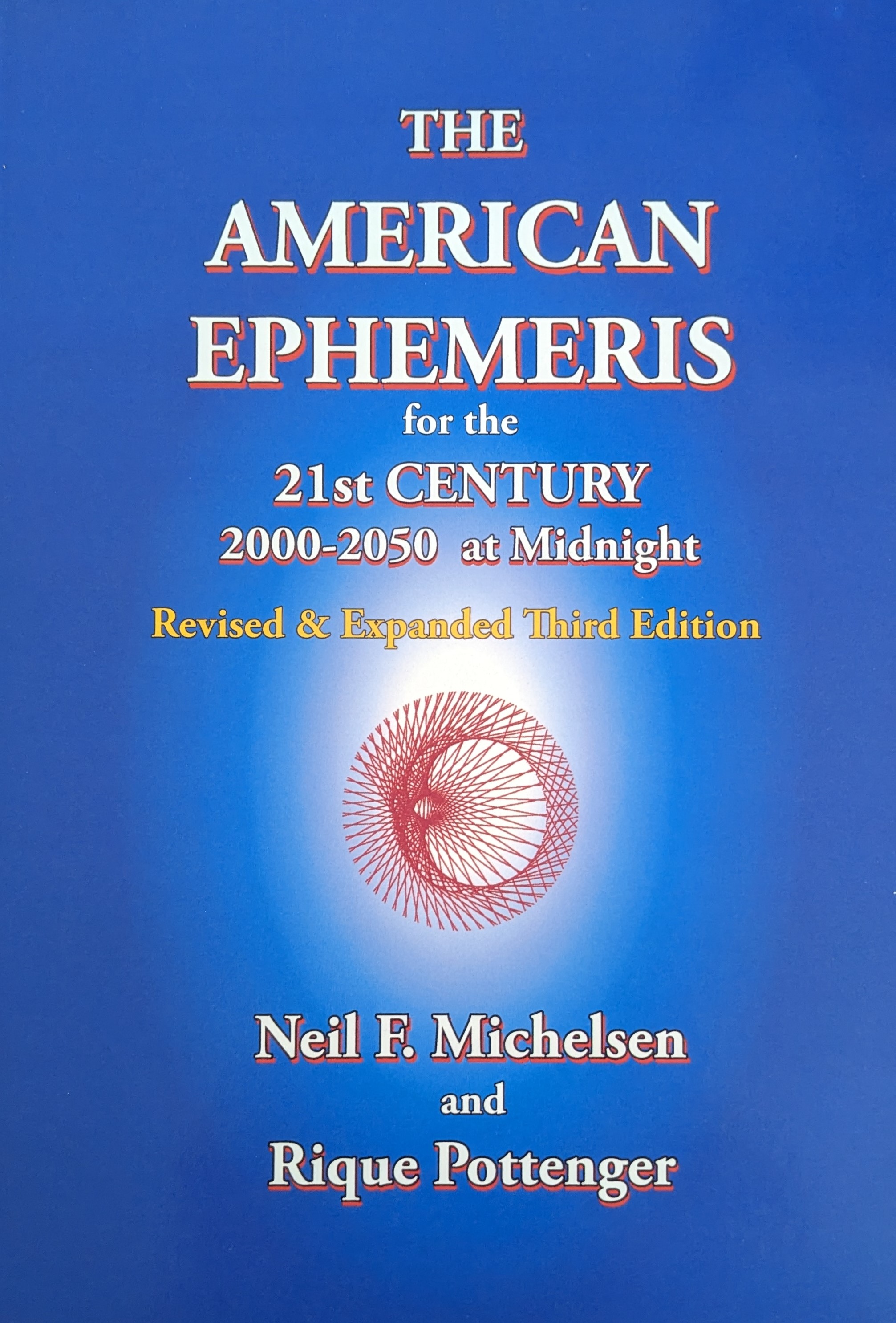 In addition to planetary positions including a wealth of data including solar and lunar eclipses, an aspectarian of Jupiter through Pluto, Chiron, Synetic Vernal Point, moon phases, and more.